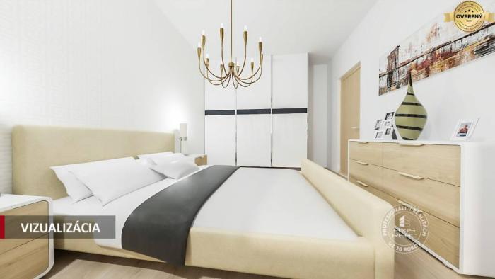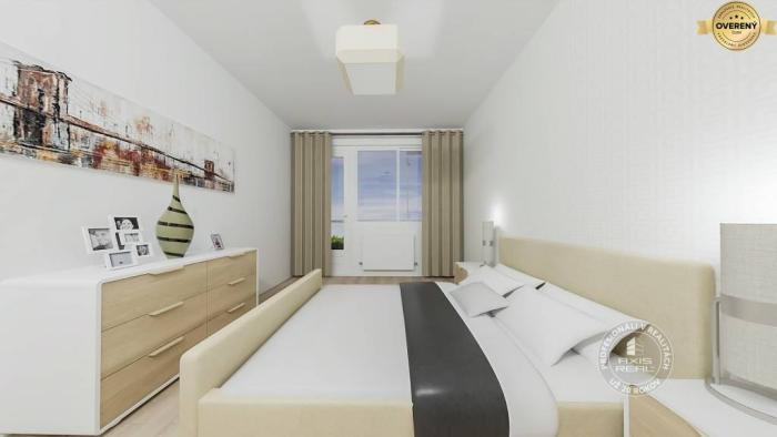 Byt pozostáva zo vstupnej chodby, samostatného WC, kúpeľne, prechodnej obývacej izby, kuchyne s výstupom na balkón a DVOCH SAMOSTATNÝCH SPÁLNÍ, z ktorých jedna má výstup na zasklenú lodžiu.