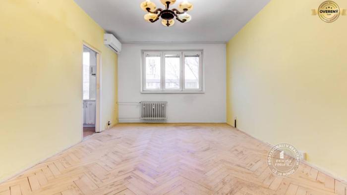 Byt je z väčšej časti v pôvodnom stave. Tento rok bola inštalovaná nová KLIMATIZÁCIA v obývacej izbe, čerstvo položená plávajúca podlaha v druhej spálni. Kúpeľňa je po staršej rekonštrukcii, vrátane výmeny elektrických rozvodov, byt má NOVÉ ISTIČE, zvyšok rozvodov je pôvodný. V chodbe vstavaný rolldor. V dvoch izbách a časti chodby sú pôvodné parkety, lepené na betón. Je možné pekne ich zrenovovať, vôbec nevŕzgajú. Veľkou výhodou je možné napojenie digestoru na pôvodný komín. Vstupné dvere sú staršie bezpečnostné, s tapacírovaním.