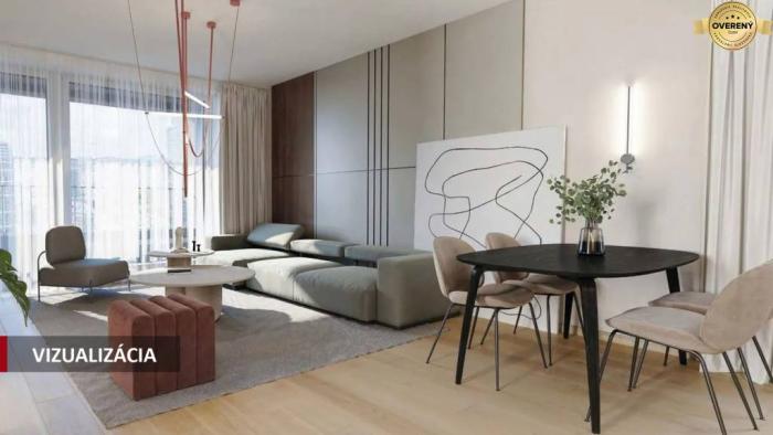 Tento úplne nový a PRÉMIOVÝ BYT sa predáva vo vyhotovení KOMPLETNÉHO ŠTANDARDU. Byt má drevené parkety v chodbe, kuchyni a obytných miestnostiach. V kúpeľni a na toalete je gres s kompletnou sanitou a batériami. V kúpelni bude akrylátová vaňa a umývadlo. Okná sú hliníkové s izolačným trojsklom, dvere a zárubne sú samozrejmosťou spolu s bezpečnostnými vstupnými dverami. Okná budú vybavené exteriérovými automatickými textilnými roletami. Vetranie vo všetkých miestnostiach je zabezpečené rekuperáciou pre riadené vetranie a zdravú vnútornú mikroklímu. Obývacia izba bude vybavená stropným chladením v podhľade. Spálňa bude mať predprípravu na osadenie klimatizačnej jednotky. Vstupné dvere sú bezpečnostné, interiérové hladké a bezfalcové. Byt má predprípravu na elektrické spotrebiče a slaboprúdové pripojenia (TV, internet, telefón). K bytu prislúcha aj praktická PIVNIČNÁ KOBKA (3 m2) priamo na poschodí bytu. Prémiová novostavba a špičková lokalita, tiché prostredie (výborná orientácia do kľudnej a zelenej časti), TOP INVESTÍCIA DO BUDÚCNOSTI (vhodná aj na prenájom). K bytu sa predáva aj praktické vnútorné PODZEMNÉ GARÁŽOVÉ STÁTIE blízko pri výťahoch v cene 38.000 Eur. CENA SPOLU: 345.000 byt + 5.500 sklad + 38.000 parkovanie = 388.500 Eur vrátane DPH.