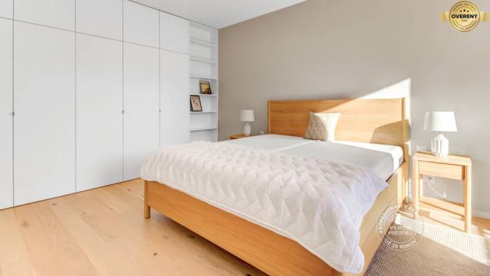 ❺ Tento byt má úplne všetko: kompletné zariadenie, nadštandardné vybavenie, veľa úložného priestoru na mieru, 2 VEĽKÉ BALKÓNY, STROPNÉ CHLADENIE aj PODLAHOVÉ KÚRENIE, pivnicu aj vyhradené parkovanie v podzemnej garáži