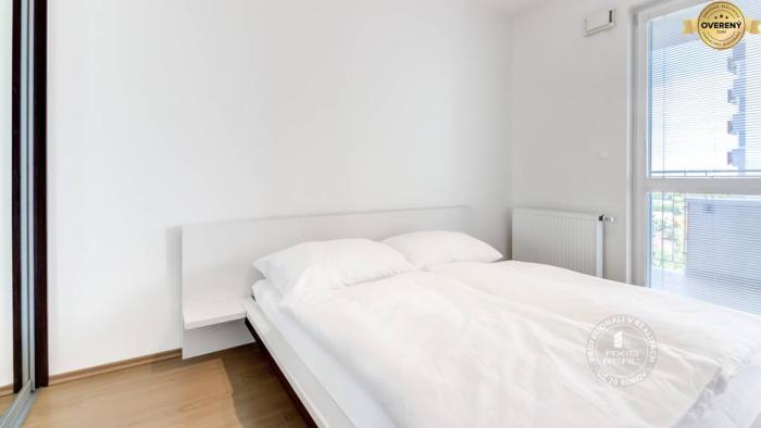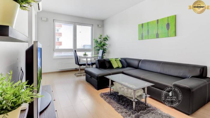 Realitná kancelária AXIS REAL ponúka na prenájom priestranný 2-izbový BYT s LODŽIOU a krásnym výhľadom v novostavbe PERLA RUŽINOVA v lokalite Bratislava II. Ružinov na ulici Kaštieľska. Tento kompletne zariadený byt má celkovú podlahovú plochu 53 m2 (byt 51m2, loggia 2 m2) a nachádza sa na 12. podlaží v 16-podlažnom dome s výťahom. Byt je orientovaný na východ a pozostáva zo vstupnej chodby, obývacej izby s kuchyňou a jedálenskou časťou, spálne so vstupom na lodžiu a veľkou vstavanou skriňou, kúpeľne s vaňou a toaletou, LODŽIE (so vstupom aj z obývačky aj zo spálne), PRAKTICKEJ KOMORY priamo v byte (2,5 m2), veľkej murovanej PIVNICE (5 m2) a vyhradeného parkovacieho miesta v PODZEMNEJ GARÁŽI. Veľkou výhodou je VEĽA ÚLOŽNÉHO PRIESTORU.