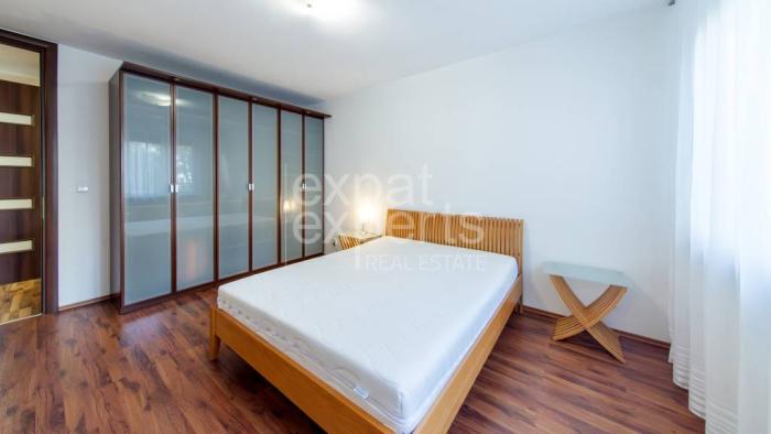 V obývačke je osadená klimatizácia, v celom byte je dostatok úložných priestorov (vstavané skrine s policami/na vešanie) + samostatný šatník vo vstupnej hale.