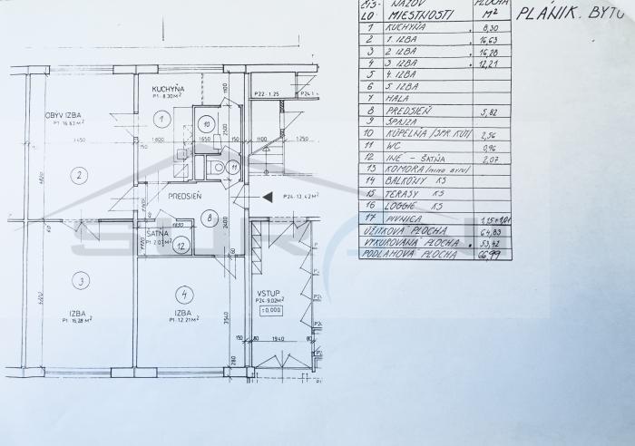Celková výmera bytu je 64,83 m² + pivnica o výmere 2,16 m².
