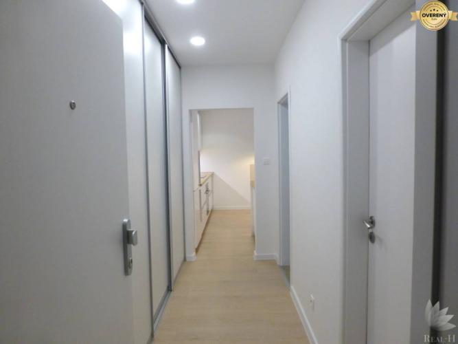 Nová vodoinštalácia od stúpačiek do WC, kúpeľne a do kuchyne. Nové radiátory prerobené. Nové interiérové dvere, bezpečnostné dvere . WC spolu s kúpeľňou, kde je veľký sprchovací kút a so skrinkou kde je posadené keramické umývadlo + nástenný rám so zrkadlom + príprava na pračku. V celom byte je plávajúca podlaha. Na chodbe je veľký ROLLDOR . Kuchyňa je spolu s obývačkou vybavená kuchynskou linkou na mieru a so vstavanými spotrebičmi / chladnička s mrazničkou, elektrická indukčná varná doska, elektrická rúra, umývačka riadu, digestor /. Plastové okná s novými žalúziami a sieťkami proti hmyzu