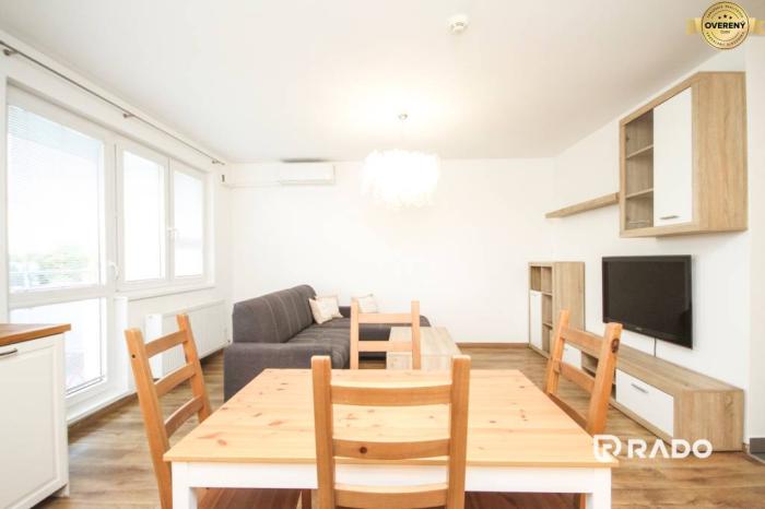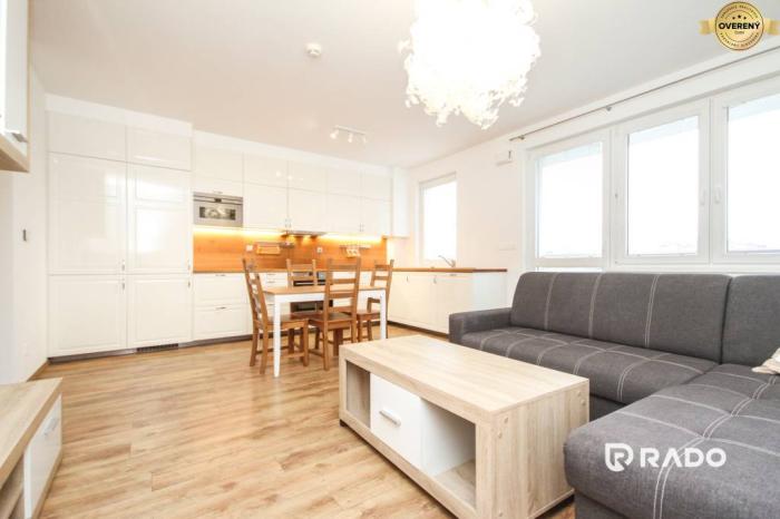 Dispozične byt pozostáva zo vstupnej chodby, z ktorej sa vchádza do priestrannej kuchyne s obývačkou, troch samostatných izieb, kúpeľne s WC a druhého samostatného WC. V obývačke je nainštalovaná klimatizácia a každá izba je vybavená rekuperačným systémom. Z obývačky je výstup na lódžiu s príjemným výhľadom. Je veľmi príjemný, svetlý a vzdušný. Obývačka s kuchyňou sú orientované na sever, izby sú orientované na západ.