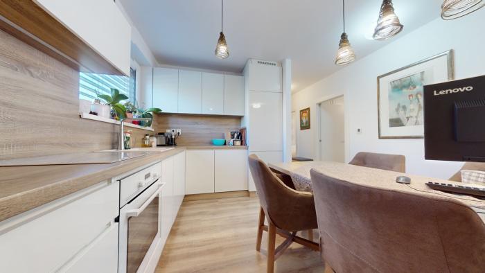 Úžitková plocha bytu je 75m2 + pozemok patriaci k bytu 138m2.