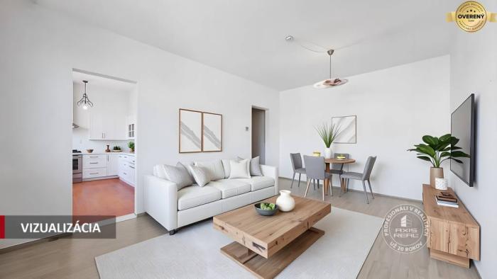 Byt v pôvodnom stave pripravený na rekonštrukciu. PRE VAŠU LEPŠIU PREDSTAVU SME BYT VIRTUÁLNE ZARIADILI.
