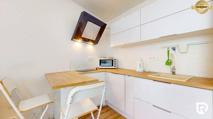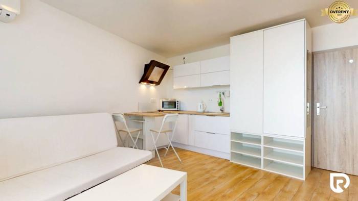 Garsónka má úžitkovú plochu 27,96 m² a nachádza sa v nej kuchyňa a kúpeľňa s práčkou a sprchovým kútom. Je navrhnutá tak, aby ponúkala dostatok úložného priestoru. Najväčšou výhodou je 5,2 m² zasklená terasa, kde si môžeš vychutnať rannú kávu s prekrásnym výhľadom na východ slnka. Na zasklenie bolo použité sklo Stopsol, ktoré neprepúšťa vietor ani priamé slnko, vďaka čomu je terasa príjemná aj v lete.