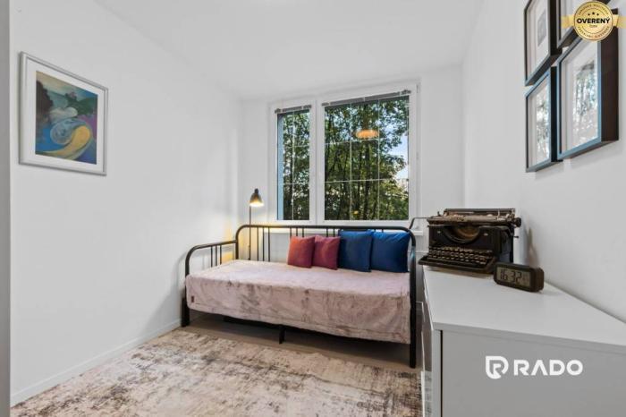 Nehnuteľnosť disponuje až tromi ďalšími samostatnými izbami. Tie môžeš využiť ako spálne, detské izby alebo pracovne - podľa tvojich potrieb. Z jedálne sa po otvorení krídlových dverí dostaneš do veľkej obývačky s moderným gaučom a zariadením, ktorá je srdcom celého bytu. Ďalšími izbami sú útulná pracovňa (ak ju neplánuješ využiť inak) a spálňa s veľkou posteľou a priestrannou skriňou. Úložného priestoru je v celom byte viac než dosť a oceníš aj modernosť tunajšieho nábytku už v cene bytu.