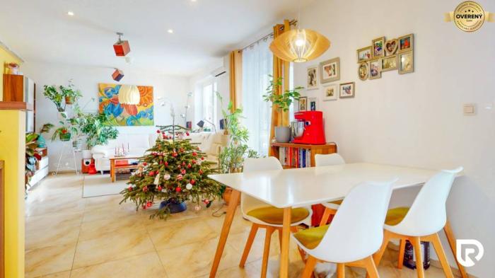 Potom oceníš tento moderný a presvetlený byt na Tymiánovej ulici na hranici Vrakune a Ružinova. Samotný byt má 99.09 m² a nachádza sa na hornom poschodí rodinného domu kolaudovaného v roku 2014. K bytu patrí 30 m² terasa s pergolou, z ktorej máš príjemný výhľad a kde si môžeš pogrilovať alebo vychutnať rannú kávu pri knihe. Tento dom zdieľaš iba s jedným susedom.