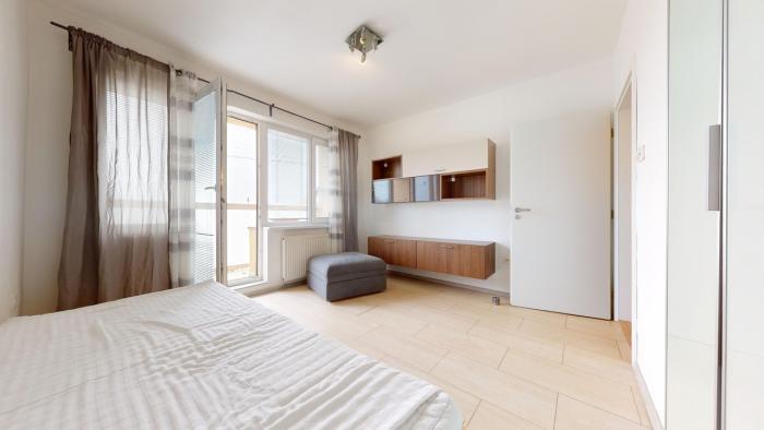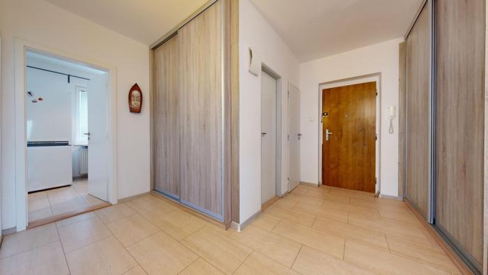Byt má príjemné dispozičné riešenie a pozostáva z dennej časti, ktorú tvorí priestranná obývačka s kuchyňou a oddychovej časti, ktorú tvoria tri samostatné nepriechodné izby s účelovým využitím ako spálňa rodičov, detská izba a pracoňa. K dispozícii je samostatná kuchyňa s modernou kuchynskou linkou, kúpeľňa s vaňou, oddelená toaleta a predsieň so vstavanými skriňami. Byt disponuje dvomi priestrannými balkónmi so vstupom z obývačky, detskej izby a pracovne. V byte sú plastové okná, veľkoplošná vinylová podlaha, ktorá priestor opticky prepája.