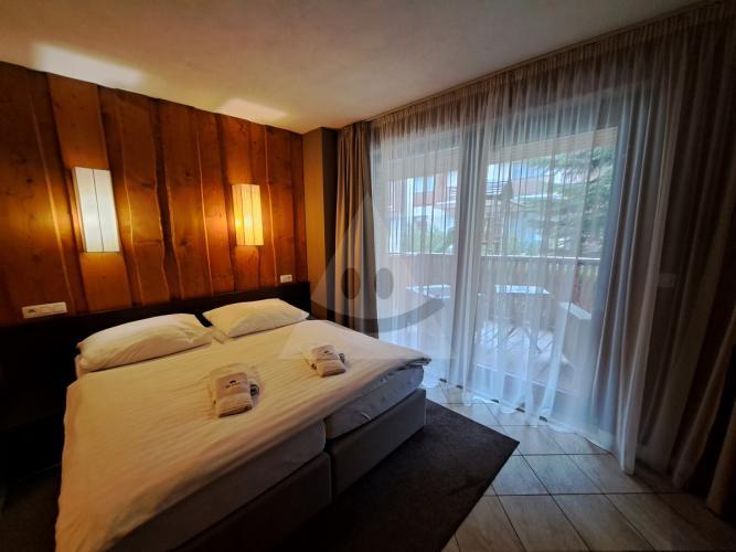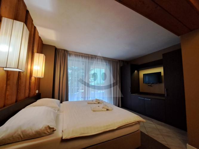 Dispozícia apartmánu:pozostáva z vstupná chodba s miestnosťou pre úložný priestor, pohodlná izba s manželskou posteľou, ktorá vám zaručí komfort a pokojný spánok. Izba má aj vlastný balkón, ideálny na rannú kávu alebo večerné posedenie, kúpeľna so sprchovým kútom a WC.Apartmán je navrhnutý pre maximálny komfort 2 osôb.