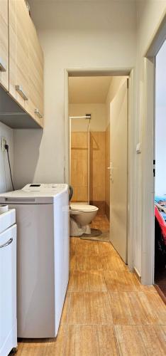 Dispozične byt pozostáva z chodby, na konci ktorej je kúpeľňa so sprchovým kútom a toaletou. Vľavo sa nachádza izba s kuchynským a spacím kútom a výstupom na balkón. V suteréne je murovaná a uzamkýnateľná pivnica.