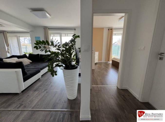 Vďaka veľkoformátovým oknám ktoré umožňujú vstup na pozemok cez obývaciu izbu aj spálňu je byt veľmi svetlý a vzdušný. Predáva sa kompletne zariadený a je bez ďalších investícií. V byte sa nachádza štýlová kuchyňa s kuchynským ostrovčekom a americkou chladničkou. Byt je vykurovaný podlahovým elektrickým kúrením. Priamo v bytovke sa nachádza lekáreň a yoga štúdio, Dunajská Lužná ponúka kompletnú občiansku vybavenosť.