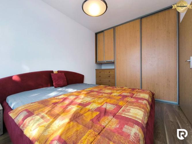 Spálňa ponúka manželskú posteľ a vstavanú skriňu s dostatkom úložného priestoru.