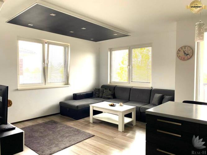 * priestranná obývacia izba prepojená s kuchyňou a vstupom na balkón