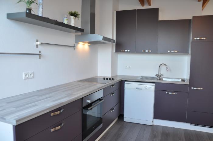 • kuchynská linka so zabudovanými spotrebičmi: plynová varná doska, elektrická rúra, digestor, chladnička s mrazničkou
