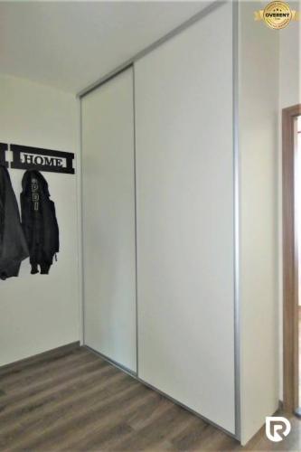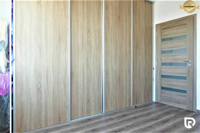 Pri rekonštrukcii boli na byte boli vymenené vchodové dvere za vysokobezpečnostné značky ADLO Security 4 triedy s 36 západov a tiež vysokokvalitná plávajúca podlaha dovezená z Belgicka. Táto podlaha je položená v celom byte, nová kúpeľňa s vaňou a samostatná toaleta. V kuchyni je na mieru vyrobená kuchynská linka so vstavanými spotrebičmi a sklokeramickou varnou doskou. V spálni, obývacej izbe a na chodbe sú na mieru vstavané skrine. Skriňa na chodbe obsahuje aj botník. Tieto vstavané skrine poskytujú veľa úložného priestoru, čo je výhodné pre viacčlennú rodinu. V detskej izbe je policový regál na uloženie hračiek a vecí.