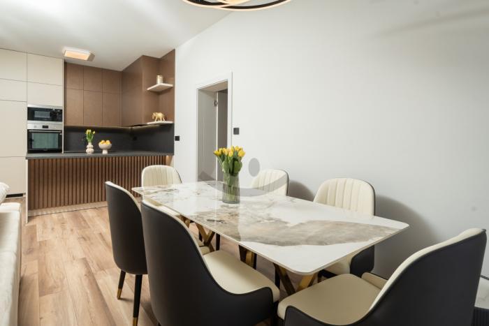 Byt ponúka kompletné štandardné vybavenie v cene, vrátane podlahového kúrenia s termostatmi v každej miestnosti, ktoré zabezpečuje vysoký komfort a úsporu energií. Súčasťou je klimatizácia (1x nainštalovaná) a príprava na klimatizáciu v každej izbe, čo zaručuje príjemné bývanie počas celého roka. K dispozícii je kompletne zariadená kúpeľňa so sanitou, kvalitné laminátové podlahy, interiérové dvere a praktický odkladací priestor na chodbe.