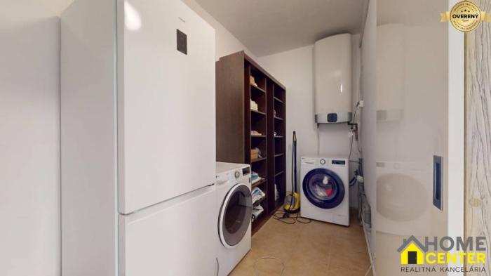 V komore sa nachádza pračka, sušička, elektrický bojler a chladnička s mrazničkou, čo je praktické riešenie, ktoré šetrí miesto v byte.