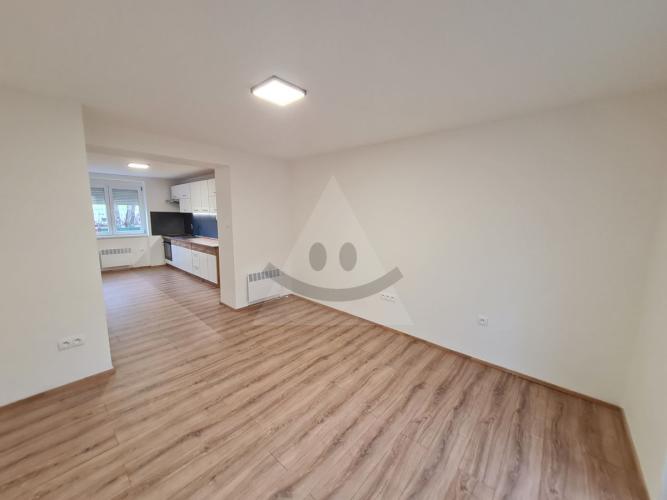 Byt s výmerou 57 m2 sa nachádza na zvýšenom prízemí zatepleného tehlového bytového domu. Dispozičné pozostáva zo vstupnej chodby, kuchyne otvorenej s obývačkou s výstupom na francúzsky balkón, spálne a kúpeľne s WC. Prešiel si novou rekonštrukciou, kúrenie je vlastné - zabezpečené dvoma klimatizáciami a elektrickým konvektorom, kuchynská linka je vybavená vstavanými spotrebičmi v kuchyni.