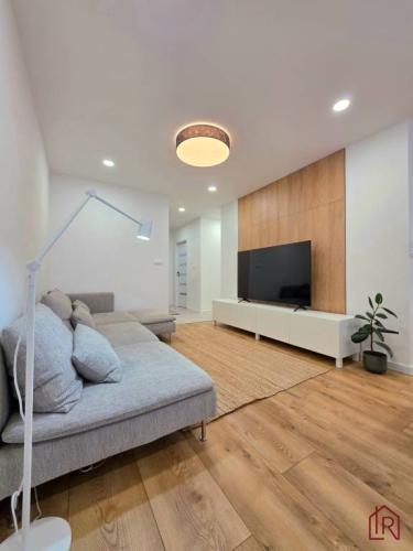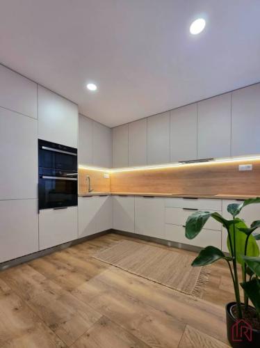 Byt je vybavený plastovými oknami, bezpečnostnými vchodovými dverami, interiérovými dverami s obložkami, novými rozvodmi vody a elektriny, novými radiátormi, laminátovou podlahou v izbách a dlažbou v chodbe a sociálnych priestoroch. Kúpeľňa má vaňu so zástenou a dve umývadlá so skrinkou na mieru, samostatná toaleta je vybavená systémom Geberit a úložným priestorom. Kuchynská linka je na mieru so vstavanými spotrebičmi vrátane umývačky riadu.