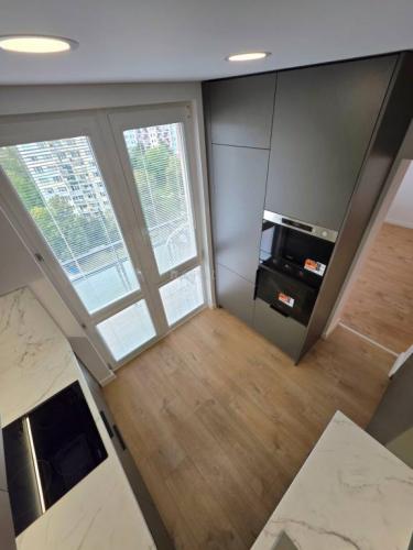 Dennú časť tvorí priestranná obývačka, ktorá je opticky prepojená s kuchyňou. Z kuchyne je k dispozícii balkón s príjemným výhľadom na Kalváriu, ideálny pre rannú kávu. Nočná zóna je striktne oddelená a ukrýva dve nepriechodné spálne. Jedna z týchto spální ponúka loggiu s panoramatickým výhľadom na mesto. Výnimočným prvkom je praktický šatník s vnútorným usporiadaním políc, ktorý spája obe spálne, čím zabezpečuje efektívne úložné priestory bez zmenšovania obytnej plochy. Byt navyše disponuje predprípravou na klimatizáciu, čo zvyšuje komfort bývania počas horúcich letných mesiacov.