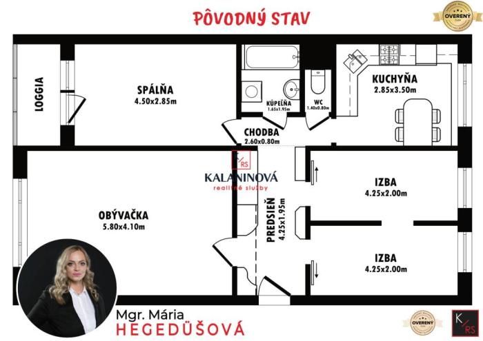 - 4 samostatné izby (spálňa s výstupom na loggiu, obývacia izba, 2 detské izby prepojené oblúkovým otvorom - možné uzavrieť)