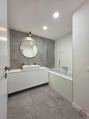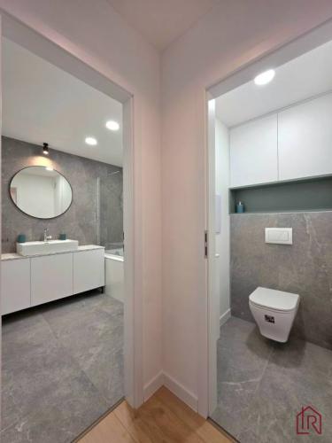 - nové jadro s kvalitným obkladom, štýlová voľne stojaca vaňa, umývadlo so skrinkou vytvorenou na mieru