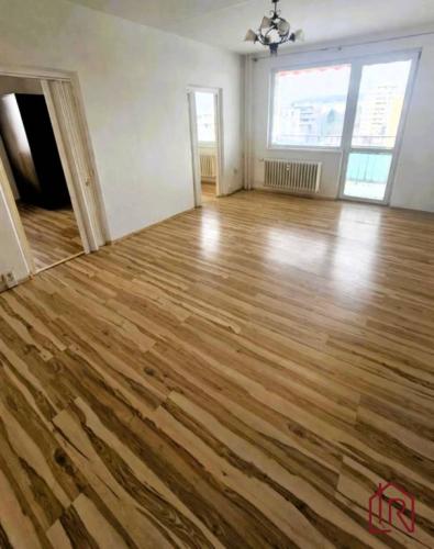 Byt o úžitkovej ploche 74 m2 (obytná 70 m2) sa nachádza na 7. poschodí zrekonštruovaného 10-poschodového domu. Dispozícia: vstupná chodba, obývačka s lodžiou, tri samostatné nepriechodné izby, kuchyňa, samostatná kúpeľňa so sprchovacím kútom, samostatné WC a kumbál. K bytu patrí pivnica. Orientácia JZ. Byt je v pôvodnom stave so staršou rekonštrukciou (plastové okná, upravená kúpeľňa a WC). Inžinierske siete: voda, elektrina, plyn, optický internet.