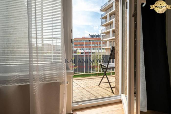 Úžitková plocha bytu je 57 m2 + priestranná loggia s výhľadom do dvora. Na loggiu je výstup z oboch izieb. Nachádza na 2. poschodí z 6 -ich, s výťahom. K bytu patrí aj vonkajšie parkovacie státie.