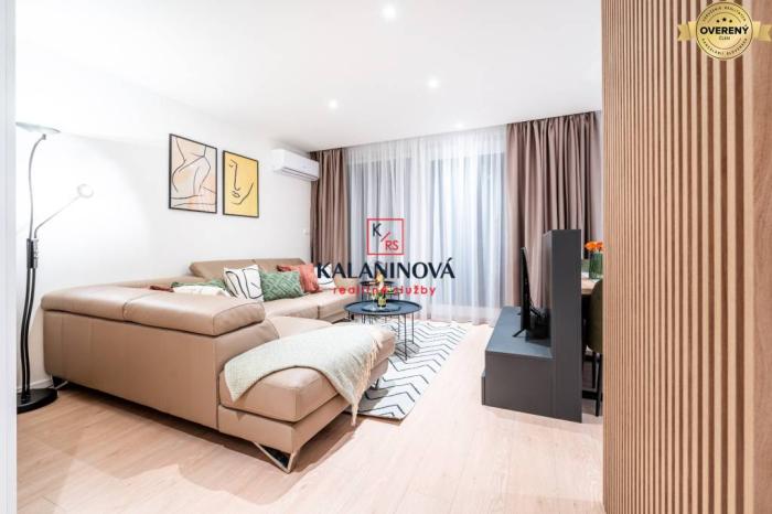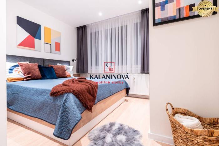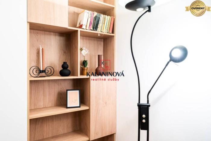Byt je kvalitne, kompletne zrekonštruovaný (menené všetky rozvody elektriny a vody, stúpačky, znížené stropy, bodové osvetlenie vo všetkých izbách, nové radiátory, bezpečnostné vchodové dvere, interiérové dvere a zárubne, plastové okná + žalúzie + sieťky, v obývačke veľké francúzske okno, plávajúce podlahy, murované jadro, dlažba v kúpeľni a vo WC, kúpeľňa - sprchovací kút, vstavané umývadlo s na mieru robenou skrinkou, samostatná kuchyňa, ktorá je prepojená s obývačkou. Na mieru robená kuchynská linka v tvare „L“, vstavané spotrebiče: elektrická varná doska so zabudovaným digestorom, elektrická rúra, mikrovlna rúra, umývačka riadu, granitový dres na umývanie riadu s dizajnovou batériou.