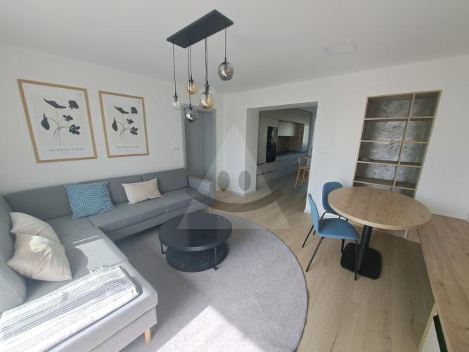 Dispozícia bytu:predsieň, kuchyňa prepojená s obývacou izbou so vstupom na priestranný balkón, spálňa, detská izba kúpeľňa s WC. Súčasťou bytu sú k dispozícii 2 pivnice.Byt sa prenajíma kompletne zariadený.