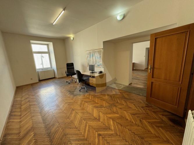 Ponúkame na predaj výnimočný nadrozmerný 6 izbový byt + kuchyňa nachádzajúci sa v centre mesta, hneď vedľa pešej zóny na ulici Moyzesova v Liptovskom Mikuláši. Výmera tehlového bytu je 220 m2, izby veľké, priestranné, slnečné. K dispozícii pivnica o výmere 5m2, tiež jedno vyhradené parkovacie miesto (50,-Eur/mesačne sa platí mestu nájom). Byt je po kompletnej rekonštrukcii z roku 2003 (okná, nové rozvody vody, elektriny, podlahy, kúrenie ústredné na plynový kotol, radiátory, omietky, kúpeľňa, zimná záhrada). Polyfunkčný objekt má nový krov, novú škridlu.
