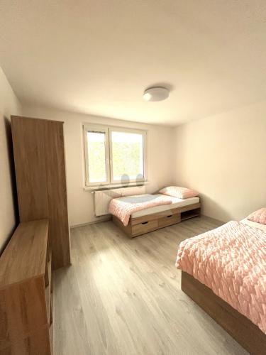Predáva sa čiastočne zariadený - vstavaná skriňa,šatník,kuchynská linka so spotrebičmi, dve postele, skrinky v izbách.