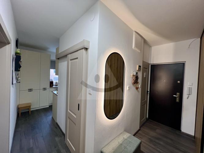 Exkluzívne ponúkame na predaj dizajnový, 3-izbový byt po kompletnej rekonštrukcii – Martin, Sever s parkovacím miestom.Byt je situovaný na 5. poschodí z 5 v kompletne zateplenom panelovom dome bez výťahu, pričom strecha bytového domu prešla rekonštrukciou v roku 2025.Vďaka ideálnej orientácii sever / juh je interiér presvetlený prirodzeným svetlom počas celého dňa a zároveň si zachováva príjemnú klímu v každom ročnom období.Prémiová rekonštrukcia a vybavenieByt prešiel kompletnou, nadštandardnou rekonštrukciou s dôrazom na kvalitu a funkčný dizajn:✅ nové medené elektrické rozvody✅ nové rozvody vody a odpadu✅ hladké stierky✅ kuchynská linka na mieru so vstavanými spotrebičmi Electrolux (chladnička, práčka so sušičkou, umývačka riadu 60 cm, vstavaná mikrovlnná rúra, digestor, indukčná varná doska)✅ bezpečnostné vstupné dvere✅ závesný WC systém Geberit✅ nové interiérové dvere a obložkové zárubne✅ klimatizácia v obývačke a spálni✅ kvalitné podlahy – dlažba a laminát✅ vstavané skrine na mieru v chodbe a izbe✅ zasklený balkón vhodný na celoročné využitie✅ interiérové roletkyDispozíciaByt disponuje premyslenou dispozíciou, kde sú všetky izby nepriechodné, čo poskytuje maximálne súkromie. Pozostáva zo vstupnej chodby, priestrannej obývacej izby, spálne, detskej izby, kuchyne, kúpeľne, samostatného WC a balkóna.Prevádzkové náklady a benefity✅ výmera: 74 m²