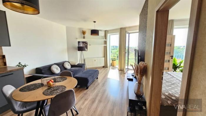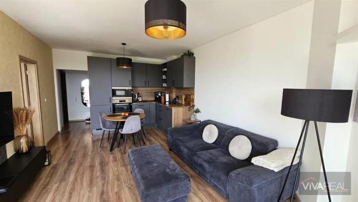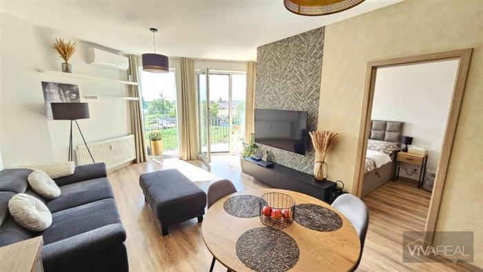 Situovaný je v 3 ročnej novostavbe s výťahom na 2. poschodí. Byt sa predáva zariadený. V byte je kvalitné zariadenie a moderný dizajn, Kuchynská linka je vybavená kvalitnými spotrebičmi.