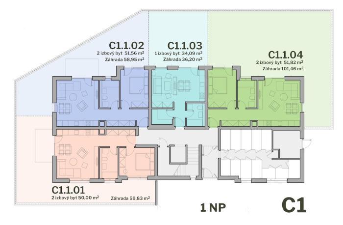 Päť moderných 3-podlažných bytových domov, s pivnicami a výťahmi, zasadených v peknom a tichom prírodnom prostredí zahŕňa 1, 2, 3 a 4-izbové byty s úžitkovou plochou od 38 m2 do 200 m2 s balkónom, loggiou, terasou a záhradou. Byty majú otvorené dispozície spájajúce obývacie izby s kuchyňou a jedálňou, francúzske okná a bezbariérové vstupy. V každom byte bude inštalovaná príprava na chladenie, príprava na vonkajšie elektrické žalúzie a prípojky internetu. Na najvyšších podlažiach bytových domov sú situované byty s terasami a peknými výhľadmi na celé okolie vinohradov. Solárny ohrev teplej vody so zateplením stavby a rekuperáciou zabezpečí energetickú triedu A0+. Každý bytový dom bude mať vlastnú plynovú kotolňu. Ku každému bytu prináleží samostatná kobka na najnižšom podlaží každého domu. Byty sa predávajú v štandardnom vyhotovení. Domy majú bezbariérové vstupy, výťahy, vonkajšie parkovanie a vnútorné parkovacie miesta v podzemných garážach s prípravou na elektromobilitu. Na prízemí bytových domov C a D sa navyše nachádzajú veľké záhradky s oplotením.