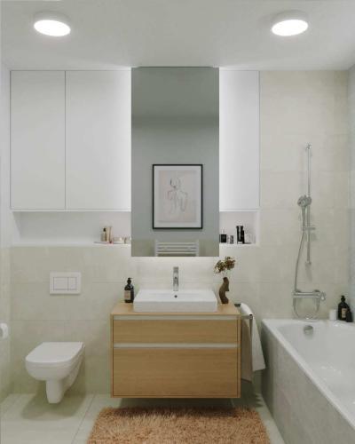 Byt sa predáva v štandardnom vyhotovení s laminátovými podlahami, interiérovými dverami, kúpeľňou so sanitou a obkladmi. K bytu prináleží samostatná pivničná kobka na najnižšom podlaží domu.