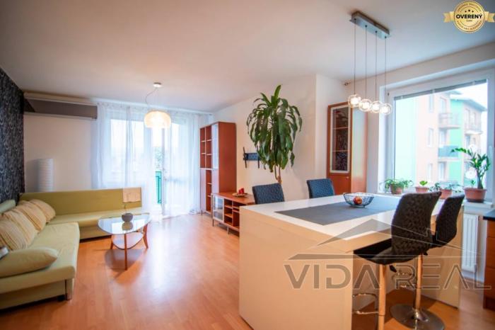 - Vybavenie: Byt je zariadený (bez práčky, TV, riadu) vrátane umývačky riadu, chladničky a mikrovlnnej rúry