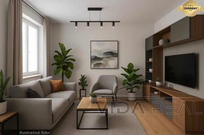 • Dispozícia: vstupná chodba, komora, obývacia izba, 2 nepriechodné spálne, samostatná kuchyňa, kúpeľňa so sprchovým kútom a s bezbariérovým WC.