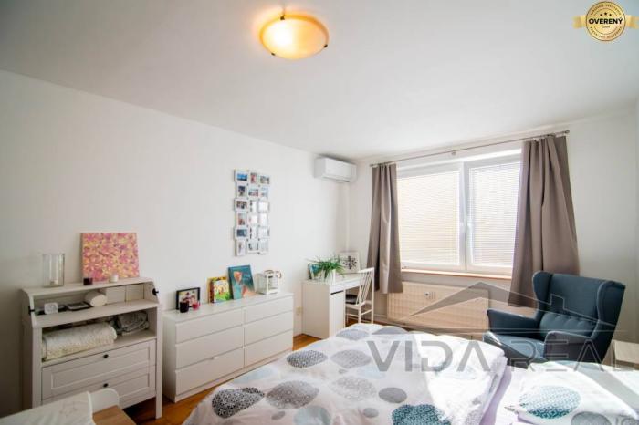 Byt je dispozične zaujímavo prerobený na bezbariérový a čiastočne zrekonštruovaný – iba elektrina je pôvodná, klimatizácia, prerobené bytové jadro, v byte sú drevené parketové podlahy v kombinácii s dlažbou, plastové okná, vstavané skrine a kuchynská linka so spotrebičmi. Z bytu je krásny výhľad na celý Pezinok a široké okolie.