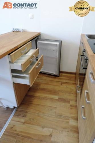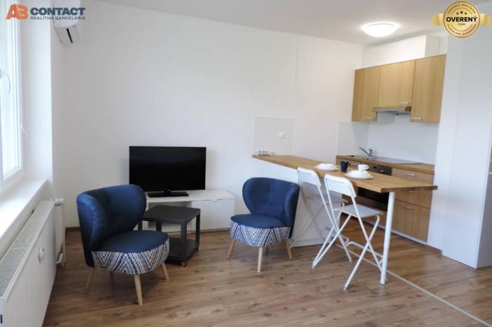 Bytový dom je tehlový, vykurovanie spoločné z kotolne na prízemí, ohrev teplej vody je samostatný pomocou elektrického bojlera s 50 l zásobníkom, priestor je klimatizovaný (teplý/studený vzduch). Tento open-space priestor je rozdelený na spaciu časť, obývačkovú časť a kuchynský kút. Z bytu je prístup na 5 m loggiu s výhľadom na rieku Váh, Červenú vežu, prírodu. Byt prešiel kompletnou rekonštrukciou a dotvoril sa praktickým nábytkom, TV, kuchynskými spotrebičmi, riadmi, práčkou - stačí prísť a bývať!