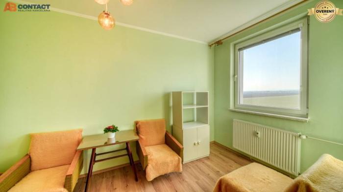 Byt sa nachádza na 6/8 poschodí zatepleného bytového domu a prináleží k nemu pivnica a loggia. Byt je čiastočne zrekonštruovaný s ideálnou dispozíciou. Pôvodné okná boli vymenené za plastové v roku 2010. V roku 2014 prebehla rekonštrukcia kuchyne, chodby a dvoch kúpeľní vrátane nových elektrických rozvodov v týchto priestoroch. V jednej kúpeľni je rohová vaňa, toaleta a umývadlo. Druhá kúpeľňa disponuje sprchovým kútom, toaletou, umývadlom a priestorom na práčku. V troch izbách je položená plávajúca podlaha a v spálni je koberec. Na chodbe je vstavaná skriňa a dostatok úložného priestoru pre kabáty a topánky. Byt ponúka nádherné výhľady na západ slnka.