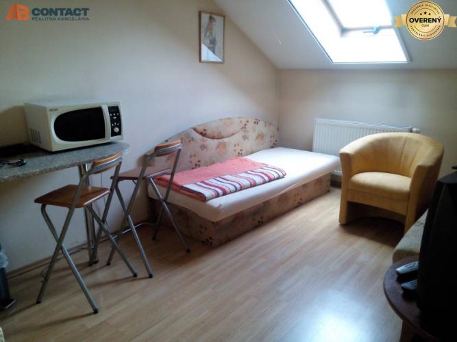 Ponúkame na prenájom apartmán pre jednu osobu, nachádzajúci sa na prvom poschodí apartmánového domu v centre mesta. Pozostáva z izby s kuchynským kútom, chodby a kúpeľne s toaletou. Prenajíma sa kompletne zariadený, internet a káblová televízia sú samozrejmosťou. Nájomcom je k dispozícií práčovňa v suteréne domu ako aj strážený dvor s parkovacím státím pre osobný automobil. Preferujeme nájomcov bez domácich miláčikov a malých detí. Možnosť krátkodobého nájmu. Nájomné je stanovené vo výške 260 €/mes. vrátane energií.