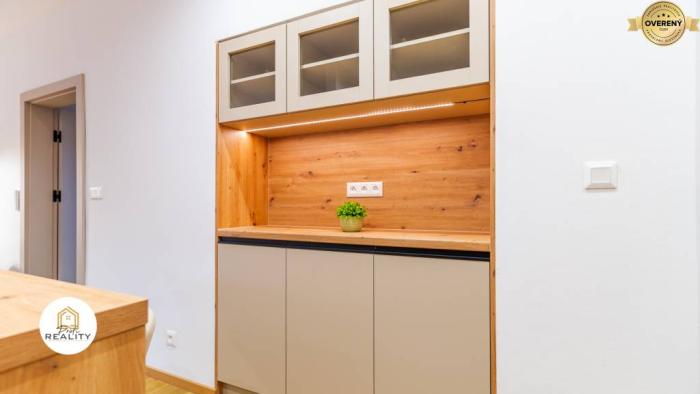 - Je vybavený modernými prvkami dennej potreby ako moderný kuchynský ostrov s varnou doskou s priamym odsávaním, modernou kuch. linkou s PUSH systémom i LED podsvietením a kompletne vstavanými spotrebičmi - Chladnička s mrazničkou, umývačka riadu, indukčná varná doska, el. rúra, digestor s odsávaním do bytovej vzduchotechniky, mikrovlna rúra, klimatizácia v každej izbe, prídavný infrapanel v kúpeľni ...