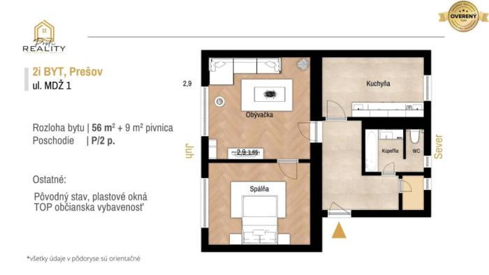 - Jeho obytná plocha 56 m² (údaj na LV) poskytne dostatok priestoru pre každého člena rodiny.