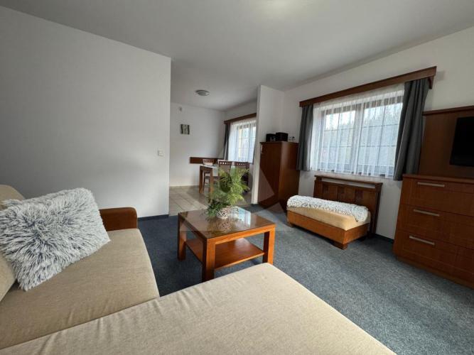 Aparmán je vybavený novým nábytkom na mieru, vstavané skrine poskytnú dostatok úložného priestoru, priestranná chodba dovolí naraz vyzuť športovú obuv všetkým ubytovaným. Navaríte si v plne vybavenej kuchynskej linke, pri tv si oddýchnete na kvalitnom rozkladacom gauči v obývačke z ktorej vyjdete na terasu a v spálni na posteli s zdravotnými matracmi nájdete kľud pre odpočinok do nového dňa.