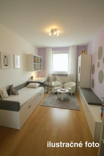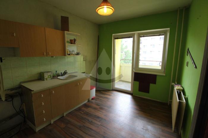 Dispozícia bytu: Byt pozostáva z chodby, kúpeľne s vaňou, samostatného WC, kuchyne, východ na lodžiu, prechodnej obývačky, 1 spálne, 1 izba je rozdelená sadrokartónovou priečkou na dve menšie izby. Byt má plastové okná, umakartové jadro, s jednou murovanou stenou od kuchyne, omietky, pôvodné rozvody, PVC krytina, plávajúca podlaha.
