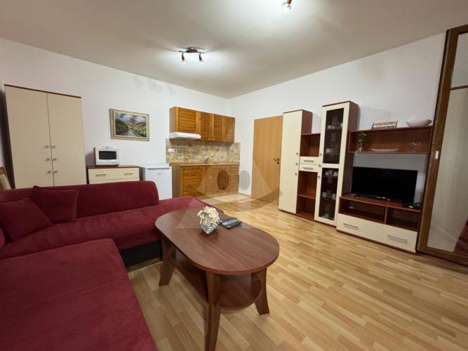 Kompletne zariadený – TV, internet, plne vybavená kuchyňa (elektrická varná doska, chladnička, mikrovlnka) a nový elektrický bojler na ohrev vody.